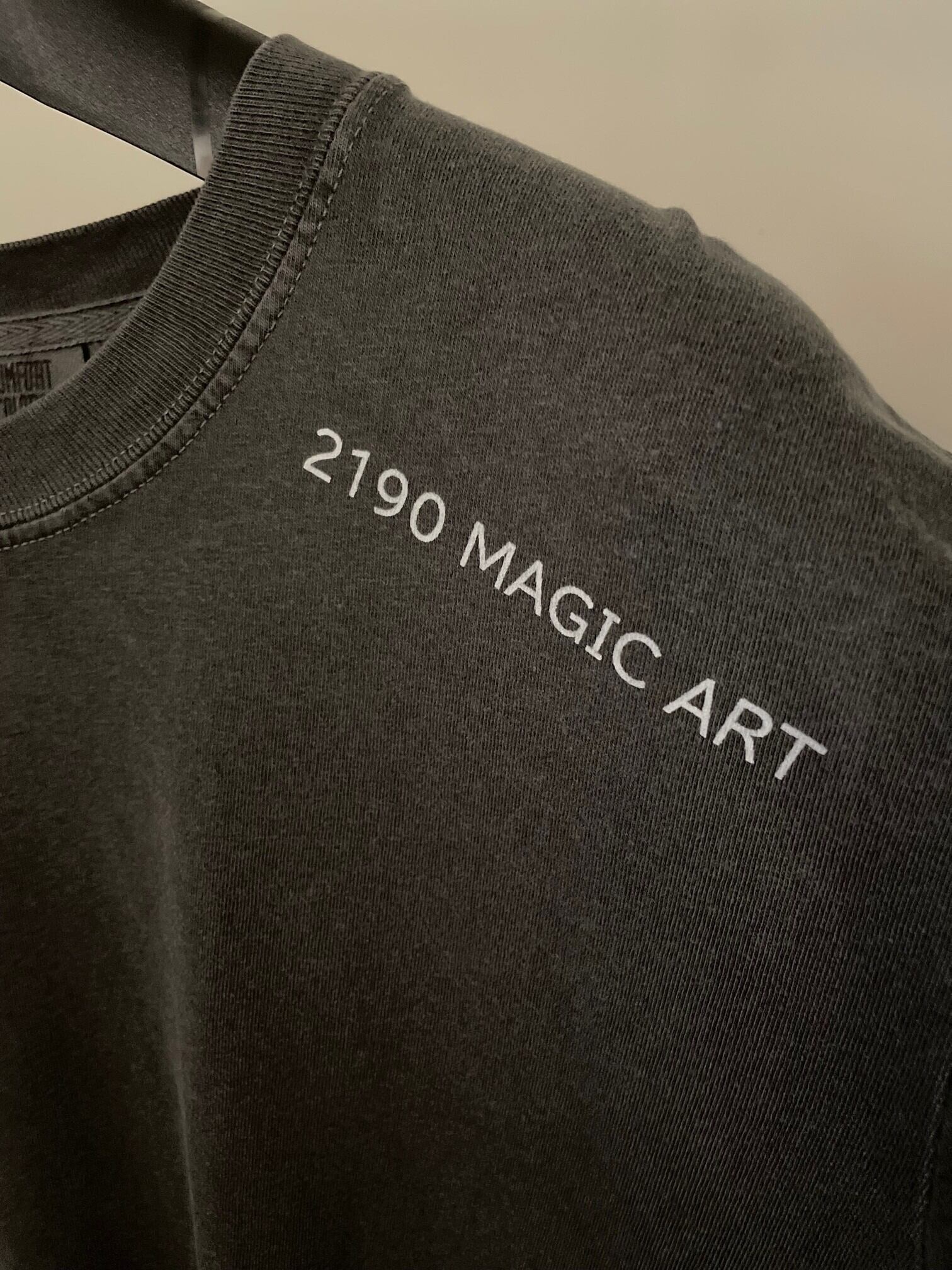 ICHI NIIKURAの絵画をあしらった古着のような風合いのCOMFORT COLORS®のTシャツ。フロントはシンプルなロゴ、バックはインパクトのあるインクジェットプリントのTシャツです。プリント柄は勿論、色、柄サイズ、プリント位置も幾度も試作を重ねて仕上げました。