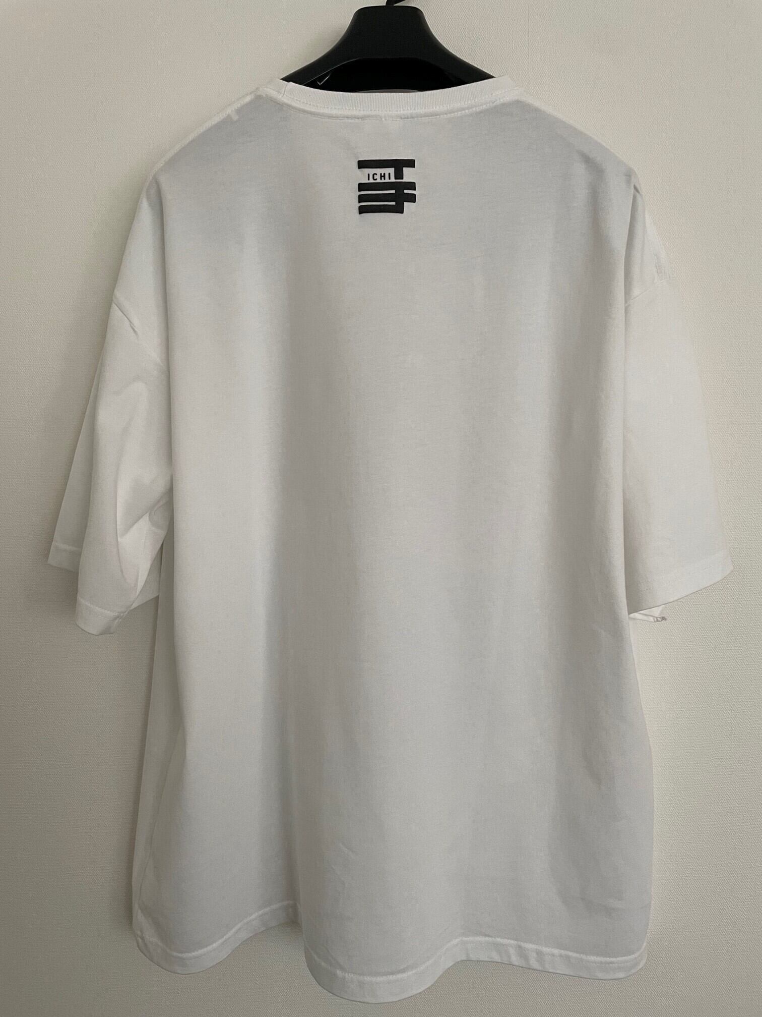 ICHI NIIKURAの絵画をあしらった初のオフィシャル半袖Tシャツ。ボディはさまざまな用途でお使い頂けるビックシルエットTシャツです。フロントはインクジェットプリント。バックの首元には、『ICHI』ロゴを発泡プリント。フロント、バックともプリント柄は勿論、ボディ色、柄サイズ、プリント位置も幾度も試作を重ねて仕上げました。オーバーサイズでも体馴染みがよく、ストンとした抜け感のあるシルエットを簡単に作り出すことができます。首リブは丈夫なダブルステッチ、サイドは横割り仕様、裾下は2本針始末で丈夫な作りになっていて繰返しの洗濯にもヨレにくい作りになっています。